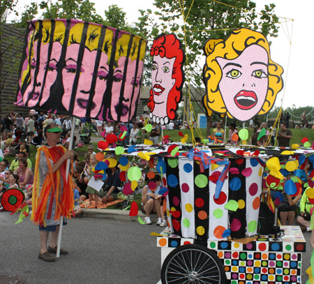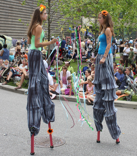 Parade Artistic Director Robin VanLear kept things flowing for the 70,000 or so people who lined Wade Oval and neighboring streets from atop her 6' stilts.